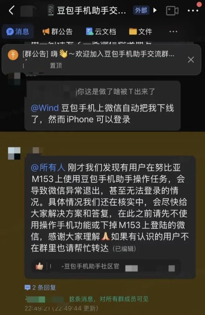 豆包手机助手社区相关说明,导致微信退出。