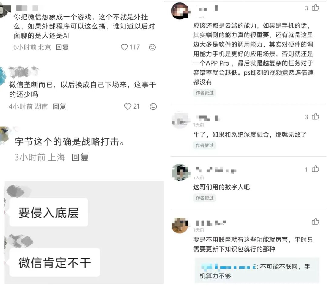 也有用户表示,豆包手机助手要操作某款软件可能会侵入应用底层,微信肯定不答应,于是触发了下线机制。